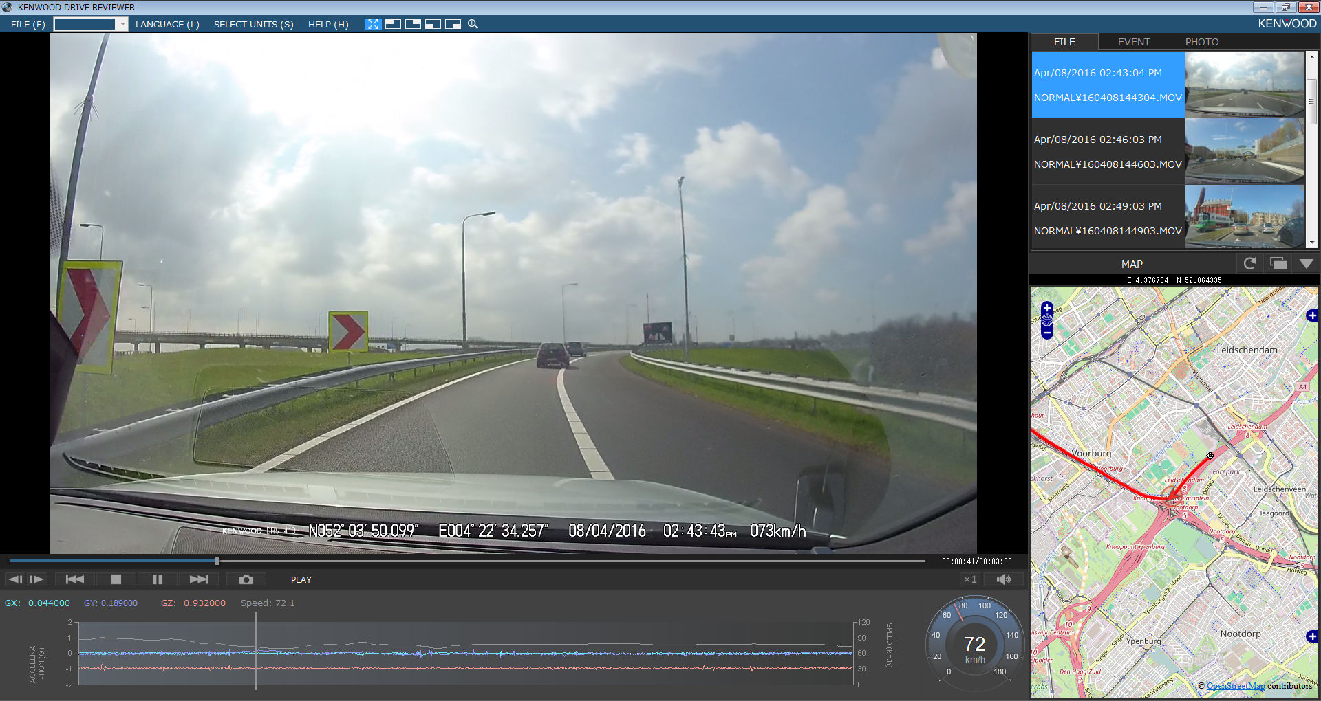KENWOOD DRIVE REVIEWER is a tool for you to view the videos recorded on the recorder.