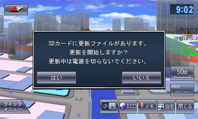 - アップデート開始確認のメッセージ表示画面で「いいえ」ボタンにタッチしてアップデートをキャンセルした後、アップデートを再度実行したい場合は、SDカードをもう一度入れ直してください。