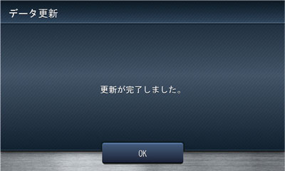 (しばらくすると更新の進捗バーが表示され、更新中は進捗バーが推移します)。 - アップデートが完了すると完了メッセージ画面が画面に表示されますので、「OK」ボタンにタッチします。