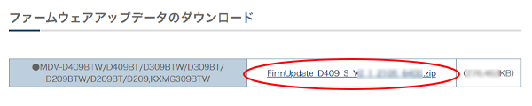 - お使いのカーナビゲーションの機種を確認した上で、下記ファームウェアアップデータのダウンロードにおいて、該当するアップデートファイル名をクリックし、パソコンにダウンロードする。
