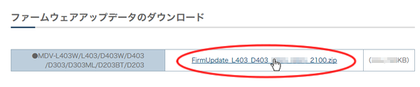 - お使いのカーナビゲーションの機種を確認した上で、下記ファームウェアアップデータのダウンロードにおいて、該当するアップデートファイル名をクリックし、パソコンにダウンロードする。