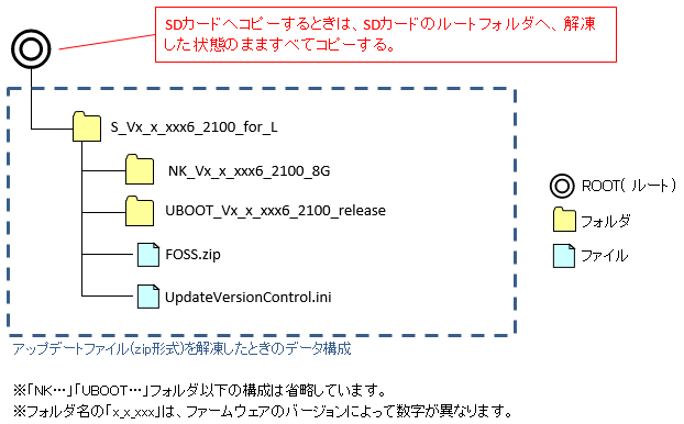 - 解凍後のアップデートファイルをSDカードへコピーする。