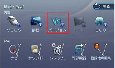 下記の手順に従って、お使いのカーナビゲーションのファームウェアバージョンが、アップデート対象バージョンかどうかを確認してください。