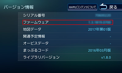 下記の手順に従って、お使いのカーナビゲーションのファームウェアバージョンが、アップデート対象バージョンかどうかを確認してください。