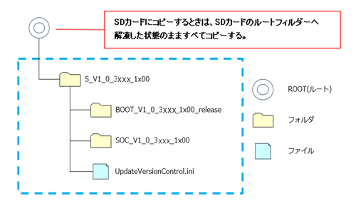 - SDカードには、ダウンロードしたアップデータ以外のフォルダ/ファイルを置かないようにしてください。
