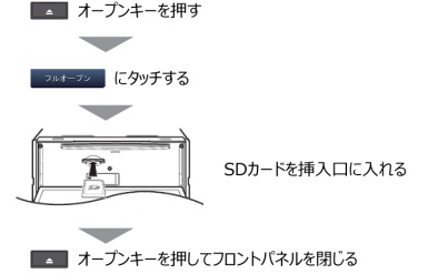フロントパネルを開き、SDカードをいったん押し込んでから、つまんで引き出してください。(操作2.を参考にしてください)。 - ◆ファームウェアバージョンの確認方法の手順に従ってナビソフトのバージョンを確認する。