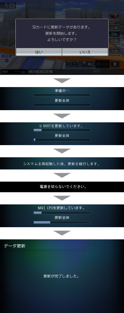 - アップデートが完了したら、ナビゲーションが自動的に再起動します。
