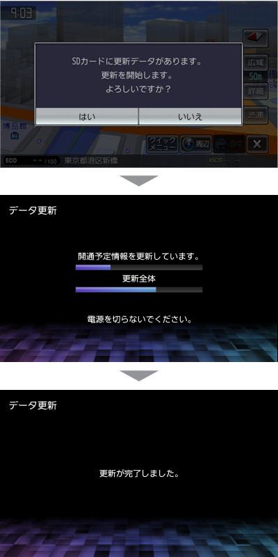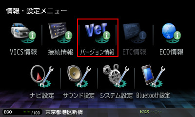 下記の手順に従って、お使いのカーナビゲーションの地図データおよび開通予定情報のバージョンを確認してください。