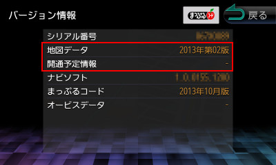 - 地図データおよび開通予定情報のバージョンを確認する。