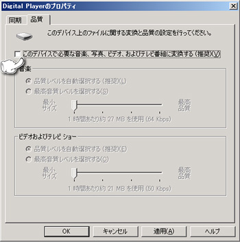 Media Kegが対応していないビットレートが高い曲を、Media Kegで再生できるビットレートに変換するように設定します。『Digital Player』で右クリックし、『詳細オプション』を押して、Media Kegのプロパティを開きます。