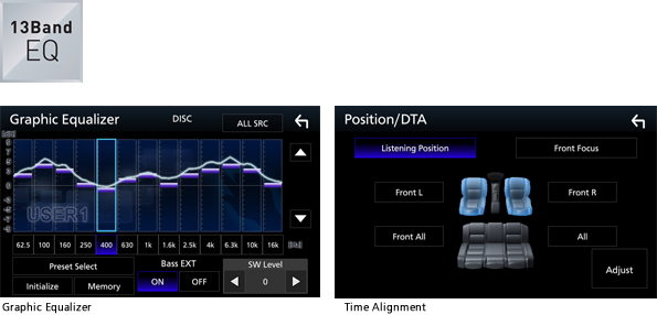 Use the graphic equalizer to tailor the sound quality to your unique tastes. Additional sound staging is available with the Time Alignment feature, designed to provide optimal sound performance.