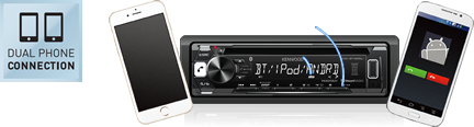 Allows two phones to be connected for hands-free operation at any time. Easily switch between both phones with the touch of a button. Answering, calling or searching your phonebook on your phone is made simple through an intuitive GUI.